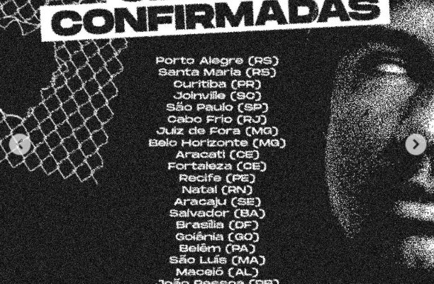 Com passagem pelo Sudeste, Sul, Centro-Oeste e Norte do Brasil, a turnê inclui paradas em grandes capitais e também em cidades do interior — como Paulo Afonso (BA) — o que representa uma importante oportunidade cultural e econômica para a região.